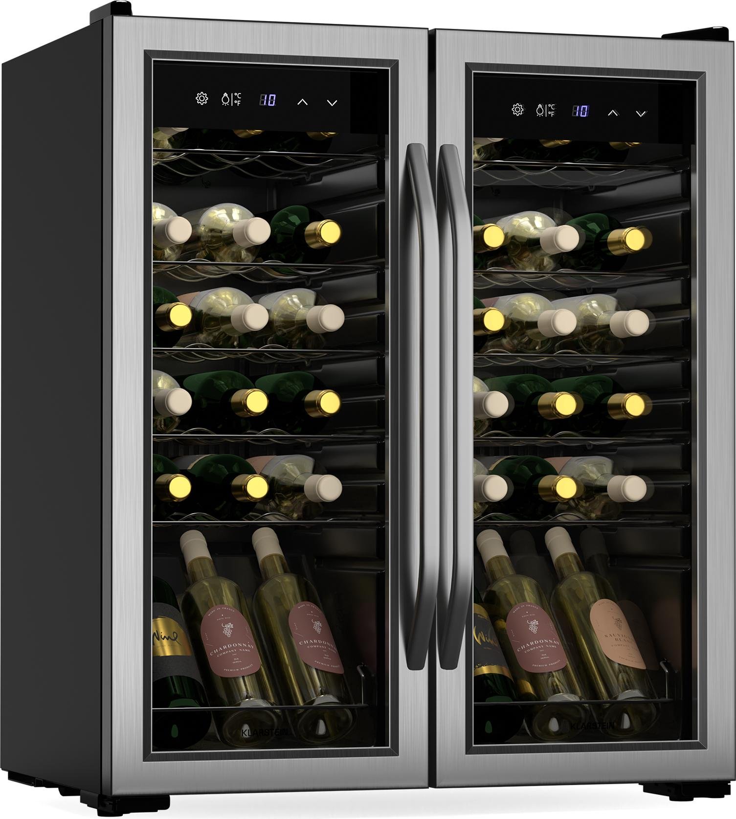 Klarstein bovella 36 duo+ cave à vin 2-en-1 de service 36 bouteilles 2 zones 7 étagères tactile noir