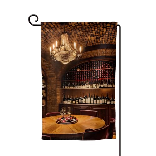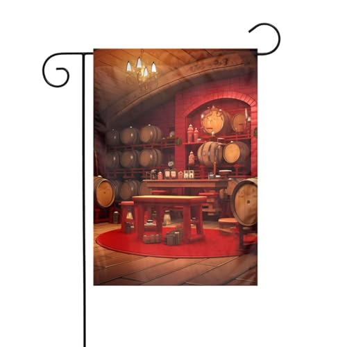 Drapeau de jardin 30,5 x 45,7 cm - Imprimé cave à vin rouge - Décoration de jardin épaisse et infroissable pour extérieur, jardin, pelouse, terrasse
