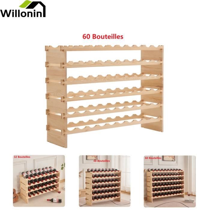 Willonin® Casier pour range Bouteilles Etagère de rangement en Bois Cave à Vin 60 Bouteilles pour cuisine 110 x 30 x 80.5 cm