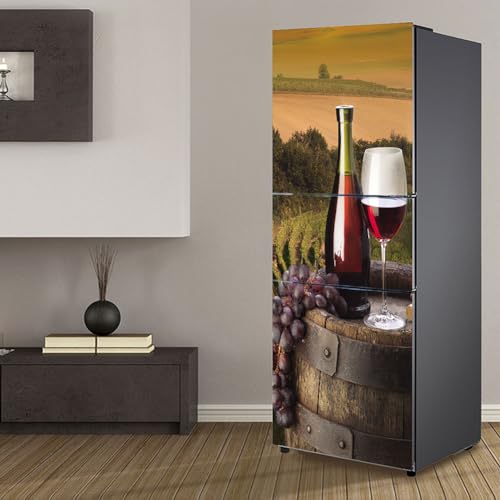 Stickers autocollants pour frigo, autocollant de réfrigérateur couvrant entièrement la porte du réfrigérateur muraux en peau pour décalcomanie de cuisine, ferme de raisin de vin rouge de cave