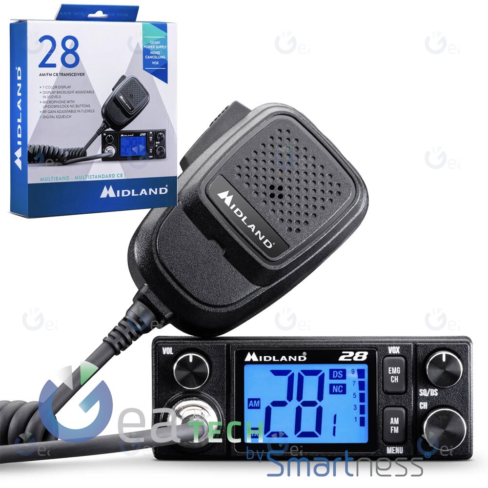 MIDLAND 28 CB AM/FM ÉMETTEUR-RÉCEPTEUR VÉHICULAIRES ANTI-BRUIT 12/24V