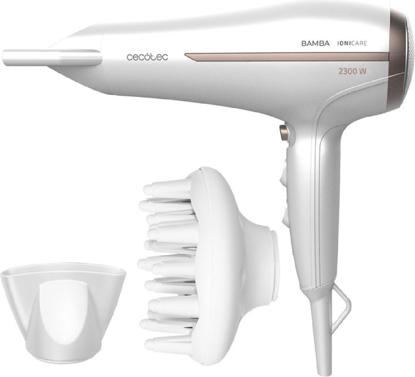 Cecotec Bamba IoniCare Elegance Hair Dryer 2400W avec AC Motor Ion Technology et Large Airflow 2 Vitesses et 3 Températures Incluant Concentrator Nozzle et Diffuser