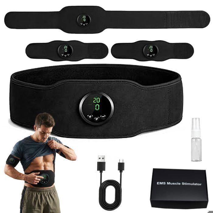 Générique 3PCS Electrostimulateur Musculaire, Ceinture Electrostimulation Abdominale, EMS Ceinture Abdominale Electrostimulation avec 12 Modes 19 Niveaux, pour Homme Femme