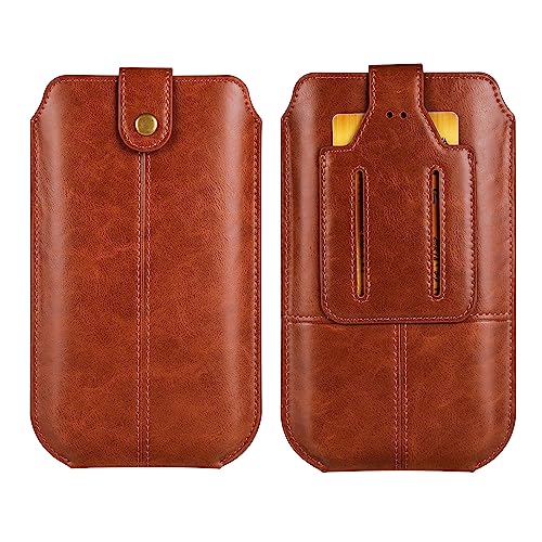 Etui de Clip de Ceinture Cuir pour Téléphone Homme, Pochette Smartphone Marron, Vertical Sacoche Randonnée Poche Sac Banane Portefeuille Porte-Cartes en Holster Clip Coque