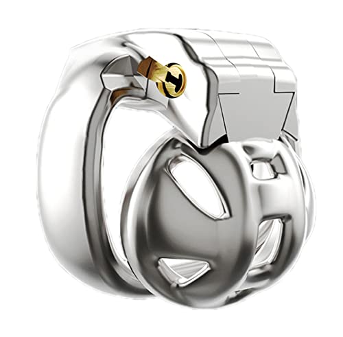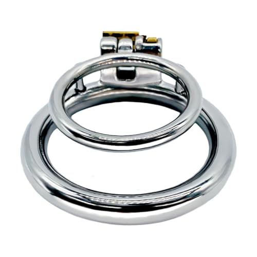 MSTMAZZ Petite Cage à Pénis de Chasteté en Acier Inoxydable pour Homme, Ceinture de Chasteté à Double Anneau avec Clé de Verrouillage Invisible, Cage de Chasteté pour Hommes SM Bondage Cock Cage
