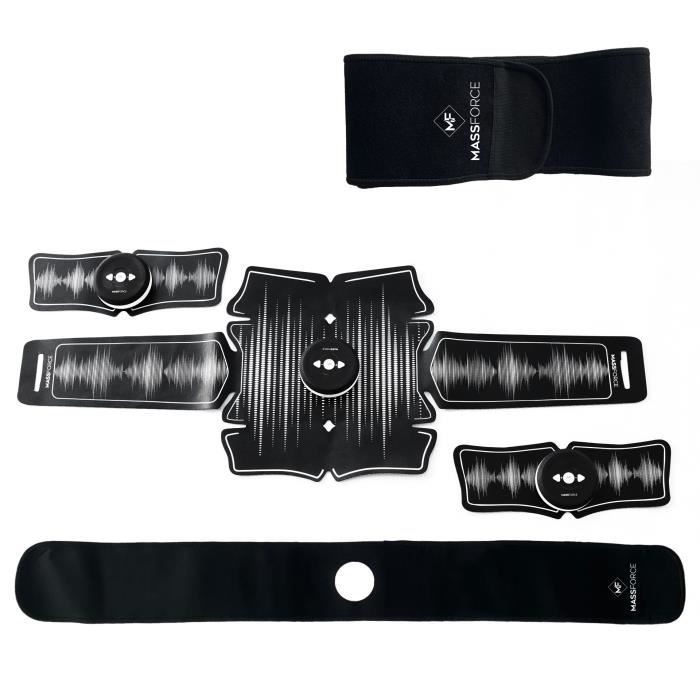 Massforce Massfit Intensity - Ceinture abdominale Electrostimulation EMS - 2 patchs bras - Ceinture sudation supplémentaire