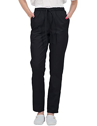 B-well ALESSI Vêtements Médicals Pantalon médicale Femme Homme Pantalon Infirmiere Unisex avec 3 Poches Élastique Moyenne et Ceinture (Noir, S)