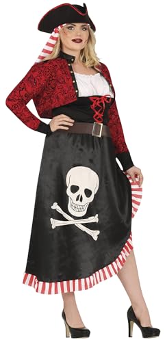 FIESTAS GUIRCA | Costume de Pirata Femme (42-44/L) - Chemise, Veste, Ceinture, Chapeau et Robe - Costumes de Corsaire et Boucanier pour Halloween, Carnaval et Fêtes Déguisées - Adulte - Noir et Rouge