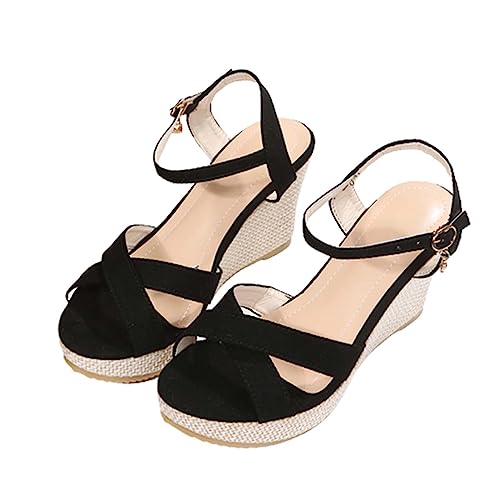 ZTFYKLIN Sandales Femme Été Chaussures Décontractées Pour Femmes, Avec Boucle De Ceinture Creuse Sur Le Côté Et Semelle Inclinée, Tendance L'Été Bottes Noires Sans Talon Sandalette Chaussure