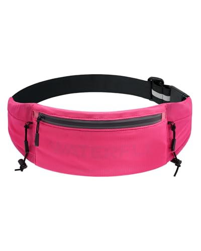 Flintronic Ceinture de Course, Etanche Léger Réglable Running Belt avec 2 Poches et Trou d'écouteur, Sac Banane de Sport pour Smartphone MP3 Billet Carte Jogging Voyage Escalade Yoga Gym - Rose Red