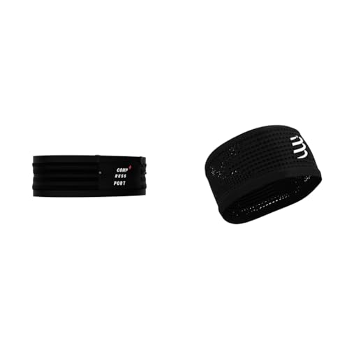 Compressport Sweatbands 3D.Dots Ceinture Trail Adulte Unisexe, Noir, M/L & Headband on/Off Bandeau Running Adulte Unisexe, Noir, Taille Unique