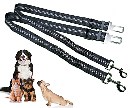 RAGI Lot de 2 sangles pour chien pour voiture - Ceinture réglable pour chien - Amortissement élastique et mousqueton solide - Noir