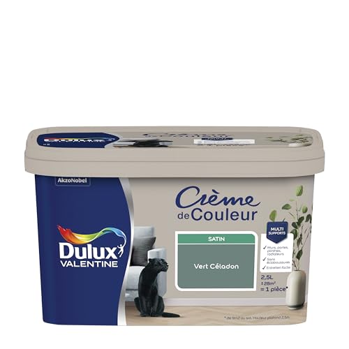 Dulux Valentine Crème de Couleur - Peinture multi-supports intérieure - Satin Vert Céladon 2,5 L