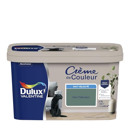 Dulux Valentine Crème de Couleur - Peinture multi-supports intérieure - Mat Vert Céladon 2,5 L