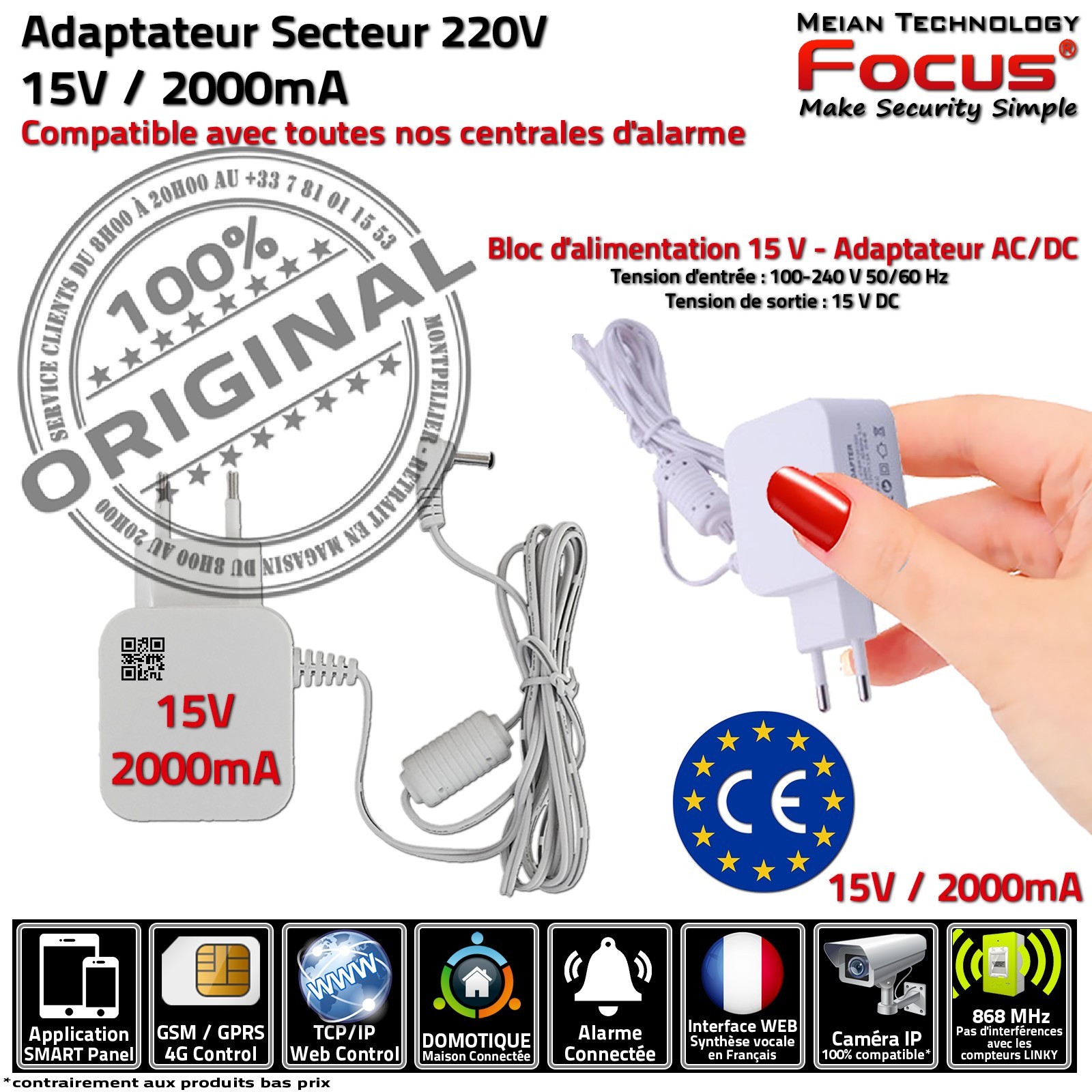Alimentation secteur 220V 15V 2000mA pour centrale d'alarme Meian Original