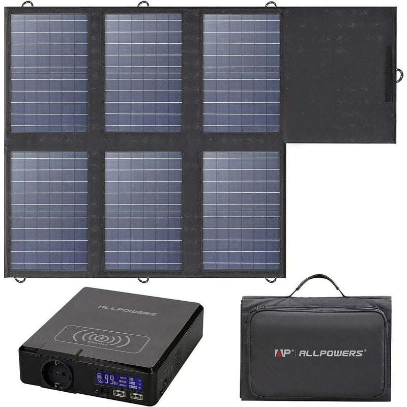 Allpowers - Générateur solaire, centrale électrique portable avec panneau solaire SP026 60 w, prises ca 230 V/200 w, alimentation mobile étanche IP67