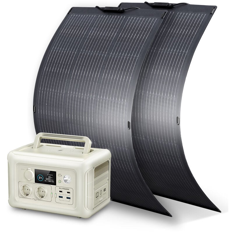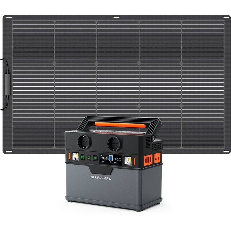 Allpowers - S300 plus Centrale électrique portable 288 Wh/300 w avec panneau solaire flexible monocristallin de 100 w, charge rapide, adaptée au