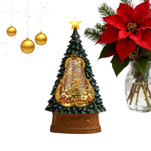 Boule à neige musicale – Arbre LED 13 x 26 cm, lanterne avec minuterie de 6 heures, décoration alimentée par batterie et USB | Centre de table du festival d'hiver avec cheminée, rebord de fenêtre, uti