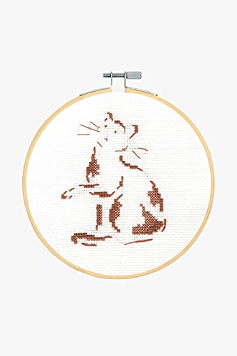 DMC Kit de broderie au point de croix motif chat ludique, comprend une toile Aida 6 pts/cm, un cerceau de 12,5 cm, un fil à broder en coton, une aiguille et des instructions (français non garanti)