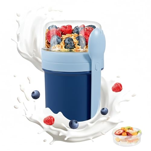 Rundago Tasse de Céréales de 500 ml, Gobelet à Céréales Bol Muesli a Emporter, Pots Yaourts avec Couvercle, Récipient Alimentaire Portable pour Enfants et Employés de Bureau (bleu)