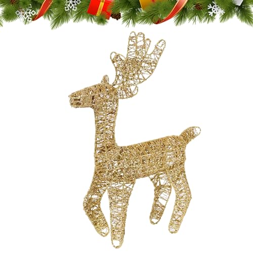 Vvikizy Lot de 3 Cerfs de Décoration de Noël Lumineux en Fer avec Paillettes Dorées et Lumières Blanches Chaudes, pour Intérieur et Extérieur, Table, Cour, Porche, Jardin (Cerf Lumineux ‑02)
