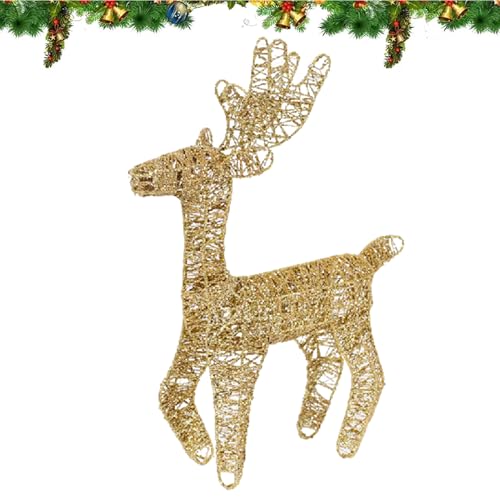 Vvikizy Lot de 3 Cerfs de Décoration de Noël Lumineux en Fer avec Paillettes Dorées et Lumières Blanches Chaudes, pour Intérieur et Extérieur, Table, Cour, Porche, Jardin (Cerf Lumineux ‑01)