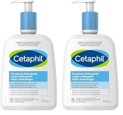 Cetaphil lotion nettoyante, 470ml, lotion nettoyante visage et corps, peaux sensibles sèches à normales, Niacinamide, Panthénol et de la Gycérine hydratante, sans savon (Lot de 2)