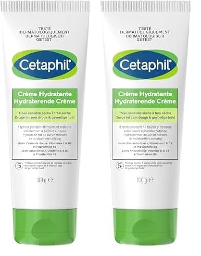 Cetaphil crème hydratante corps, 100g, Visage et corps, peaux sensibles sèches à très sèches, Crème corps hydratante, Niacinamide, Panthénol et de la glycérine, sans parfum (Lot de 2)