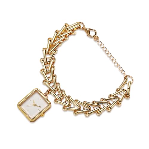 Montre Bracelet De ChaîNe à La Main avec Cadran Carré, Montre pour Femme Quartz Acier Inoxydable avec Bracelet, Montre Bracelet Quartz Cadran Original Affichage Analogique Bracelet en MéTal Luxe