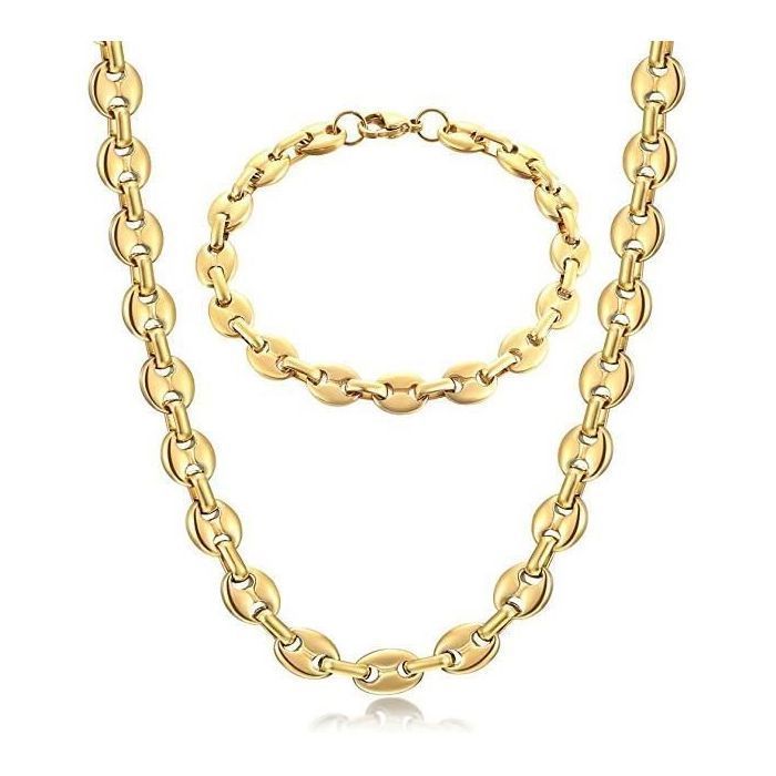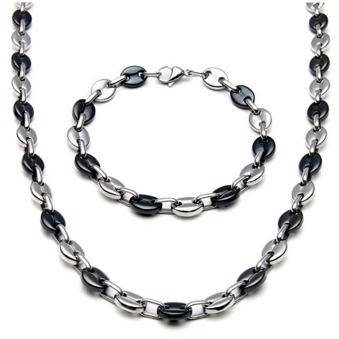 AFSTALR Chaine Grain De Café Homme Collier ET Bracelet en Acier Inoxydable Collier Biker Noir 56-9mm