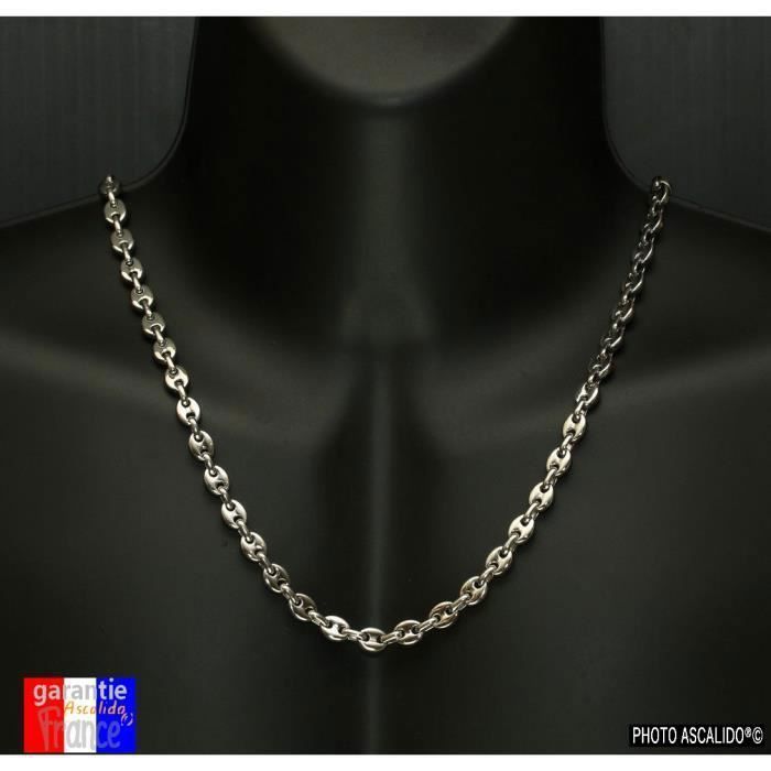 AFSTALR Grain de Cafe Homme Argent Chaine Collier Acier Inoxydable Anniversaire Cadeau Argent 51-9mm