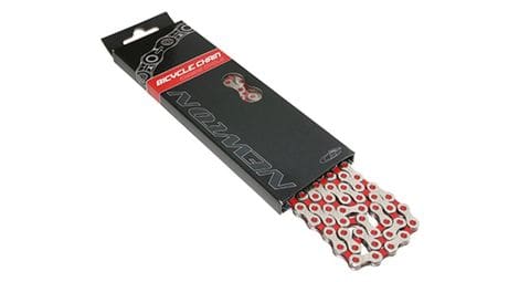 Chaine velo route vtt 11v newton kmc argent rouge 116 maillons compatible shimano sram