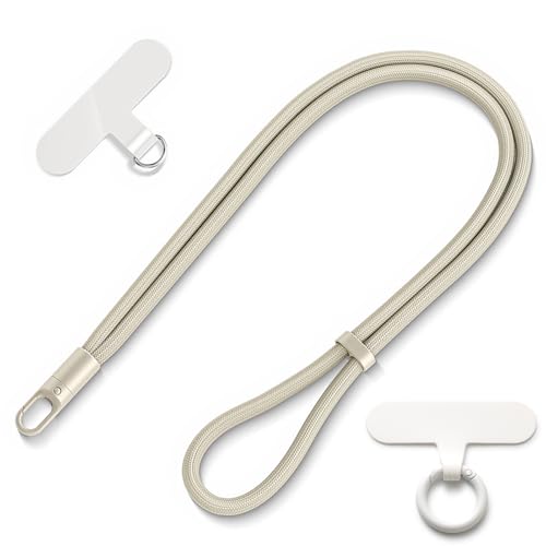 Bellanova Dragonne Telephone Portable pour téléphone Portable, Chaine Telephone Portable en Cordon Anti-Perte, avec Patch Ultra Fin, Chaîne Courte réglable pour Coques, clés (Gris)