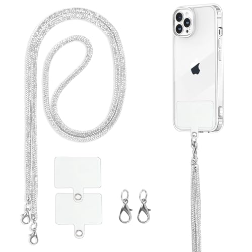 Knrlqim Cordon Telephone Portable Universelle avec 2 Patchs,Strass Scintillants Lot de Universal Chaine Telephone Portable Collier de Longe, Compatibles avec Plupart des Smartphones, Blanc
