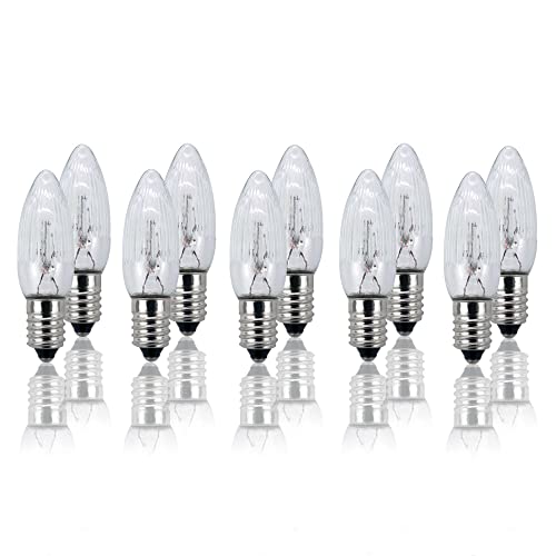 Hellum bougies de rechange pour arc flottant, 10 pièces bougie à cannelure pour arbre de Noël bougies chaînes lumineuses intérieur avec 20 points de combustion, E10/ 12V/ 2,5W/ 19 lumens 950038