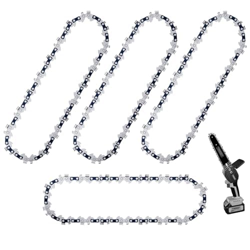 MEVRONISSHOP-4 Pièces Chaine Tronconneuse 10 cm, Chaine de Tronconneuse, Mini Chaînes de Tronçonneuse de 4 Pouces, Mini Chaînes pour Tronçonneuse Portatives Sans Fil, avec Guide Meule 28 Drive Links