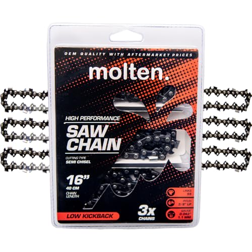 MoltenSales Lot de 3 chaînes de tronçonneuse de 40,6 cm 3/8" .043 55DL de rechange pour Stihl MS 170 250 251 61PMM355 Oregon 90PX055G 90PX R55