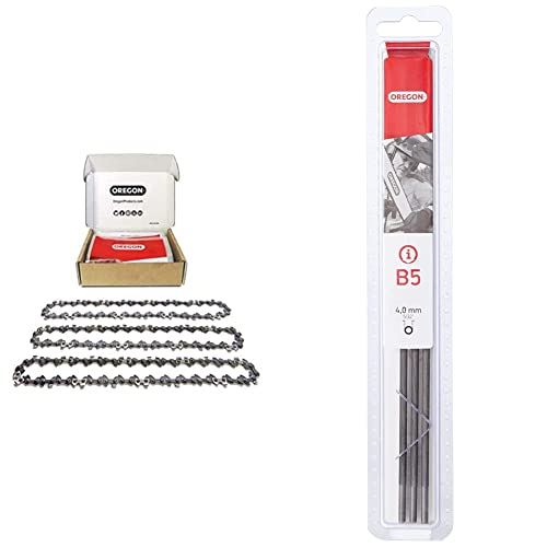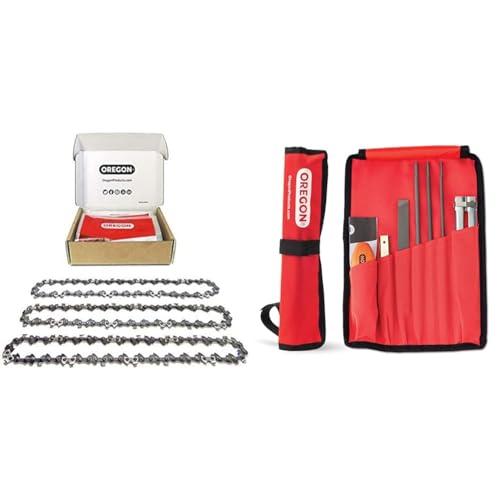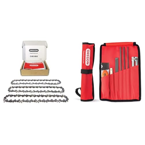 Oregon - Lot de 3 Chaînes de Tronçonneuse pour Guide-Chaîne de 14" (35 cm) & Kit d'Affûtage Universel Portable pour Tronçonneuse, Limes Rondes 5/32" (4 mm) / 3/16" (4,8 mm) / 7/32" (5,5 mm)