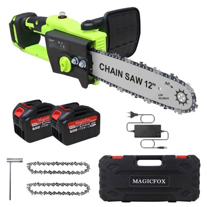 Tronçonneuse Brushless sans fil Coupe 30 cm MAGICFOX Auto lubrification avec 2 batteries*6.0Ah 2 chaines Tronçonneuse Légère