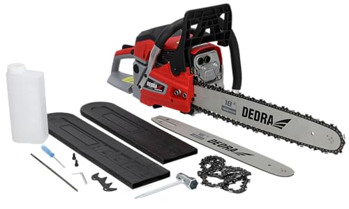 DEDRA Tronçonneuse thermique 2,4 kW 58 cm³, livré avec 2 guides-chaînes 45 cm (18") et 40 cm (16"), chaînes, tronçonneuse essence puissante pour abattage, élagage, coupe de bois de chauffage au jardin