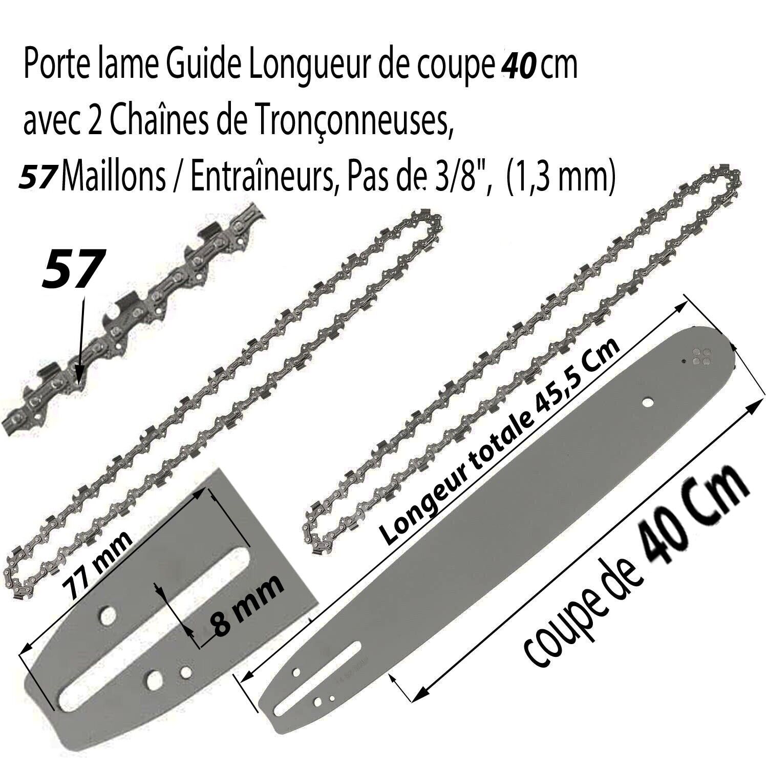 PACK Guide +2 chaines tronçonneuse 3/8" LP 0.050" 57 ent. 40 cm de coupe