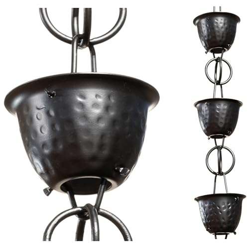 Monarch Rain Chains Chaîne de Pluie décorative en Aluminium martelé avec revêtement en Poudre Noire de 2,6 m pour gouttières, Tuyau de Descente de Rechange en Aluminium Noir