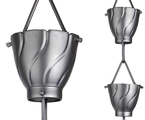 Monarch Rain Chains Aluminum Akira Rain Chain, 8.5 ft Pewter Powder Coated Aluminum Decorative Rain Catcher Chain for Gutters, Pewter Aluminum Rain Gutter Replacement Downspout