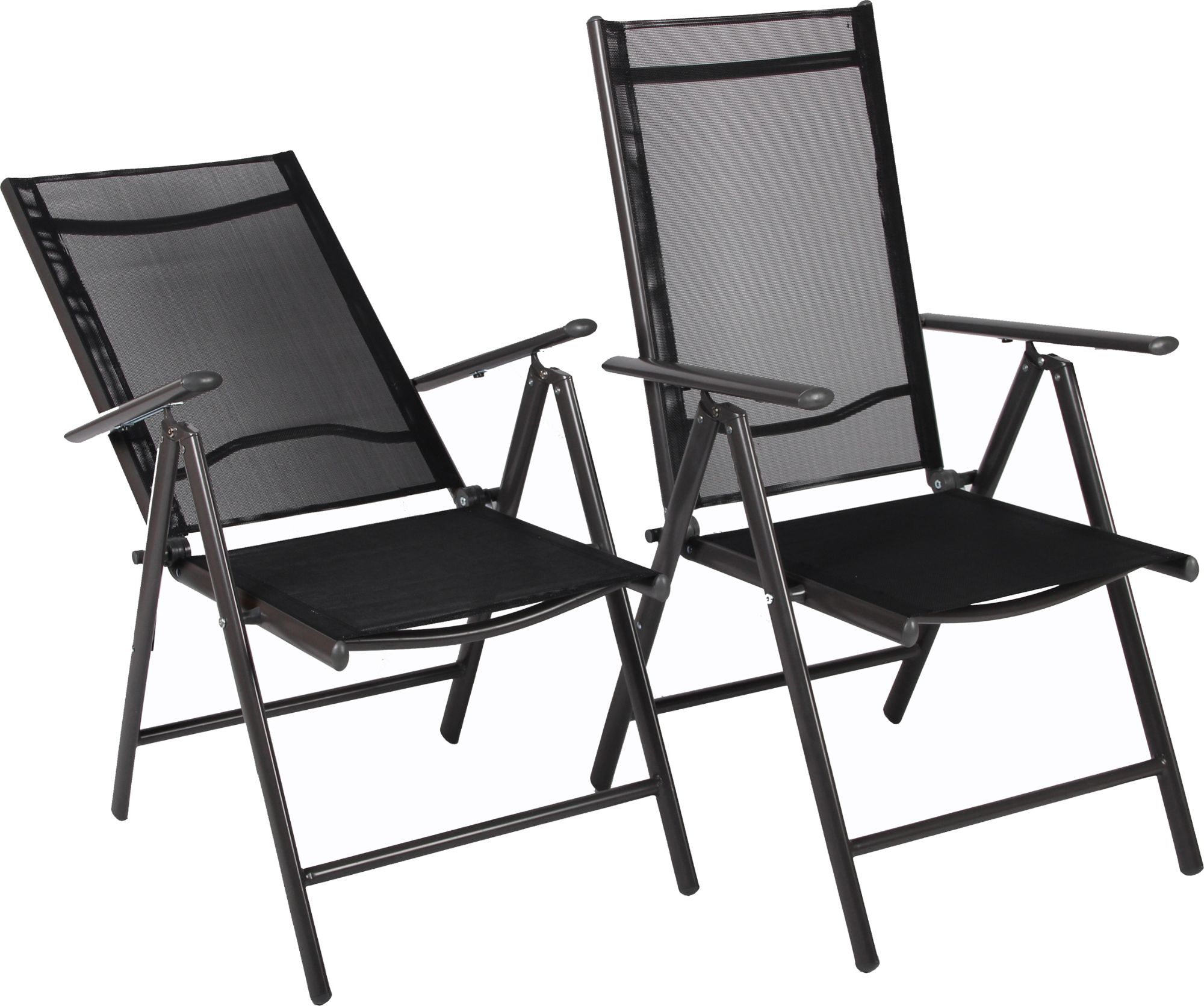 greemotion Chaise pliante de jardin Grenada – Chaise réglable à dossier inclinable - Chaise avec accoudoir noire – Chaise extérieur pliante et inoxydable – Chaise pliante aluminium et textilène