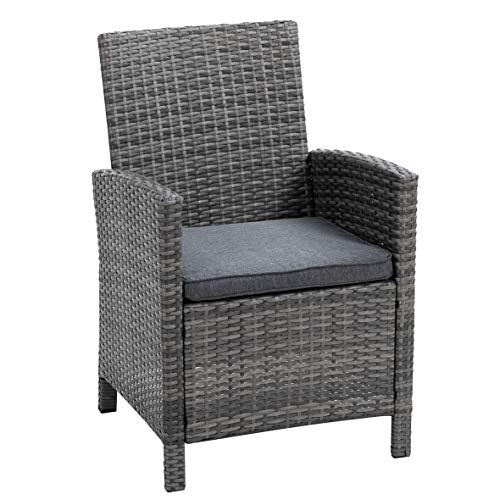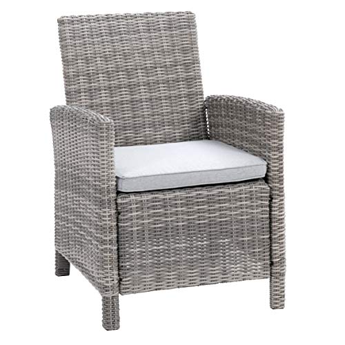 greemotion Fauteil de Jardin Malia, Chaise de Jardin en Poly Rotin avec Accoudoirs, Fauteuil d’Extérieur Cadre en Aluminium, env. 65 x 90 x 59 cm, Gris