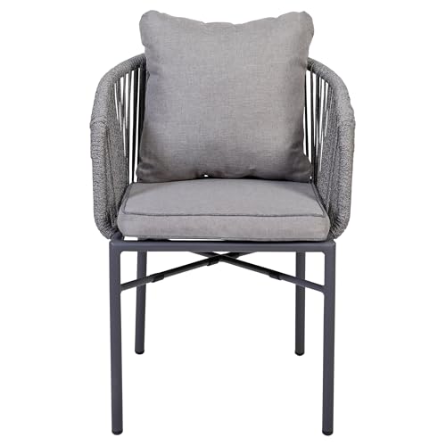greemotion Fauteuil empilable Calgary, Chaise de Jardin en Aluminium avec Coussin d'assise 100% Polyester, argenté/Gris