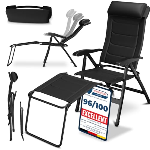 KESSER® Chaise de Jardin à Dossier Haut avec accoudoirs - Chaise Pliante en Aluminium avec Oreiller - Chaise de Camping réglable en 7 Positions - Respirant et résistante aux intempéries - Pliable et