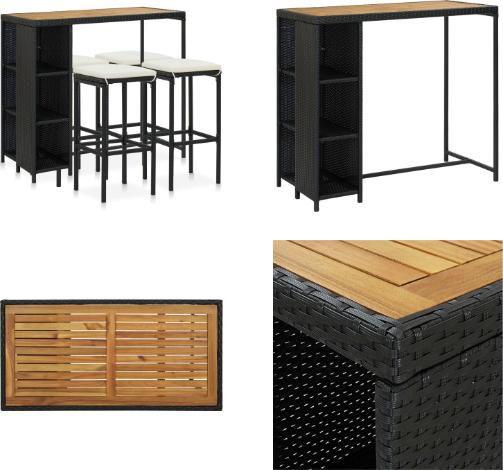 vidaXL Chaise de barar 4 st svart konstrotting och massivt akaciaträ 362608