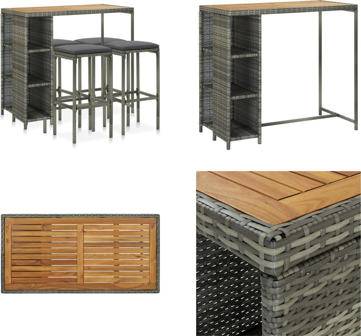 vidaXL Chaise de barar 4 st grå konstrotting och massivt akaciaträ 362605