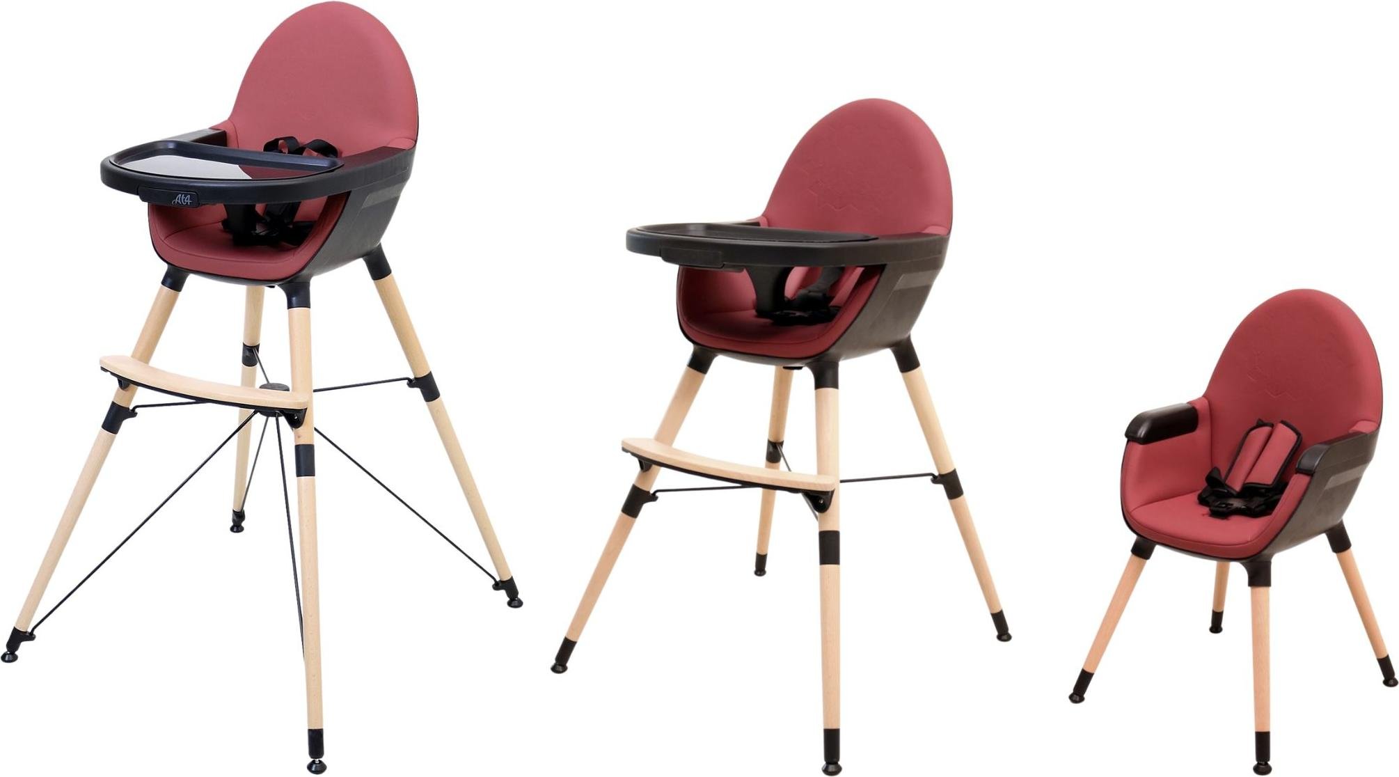 AT4 - Chaise haute bébé évolutive CONFORT bordeaux et noir | 3 hauteurs d'assise | Harnais 5 points | Bretelles | Hauteurs d'assise : 72,5 cm en position haute - 59 cm intermédiaire - 34 cm en basse